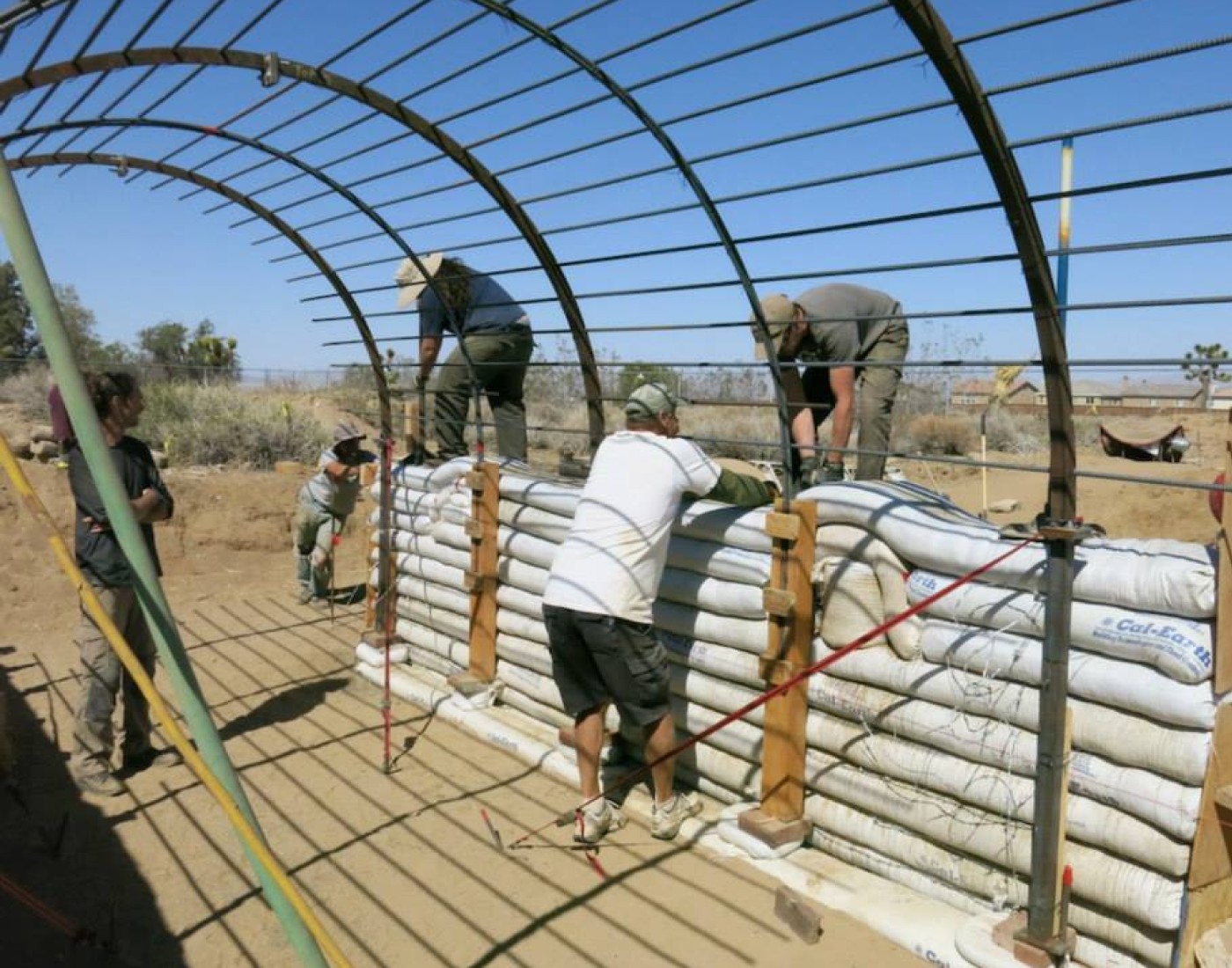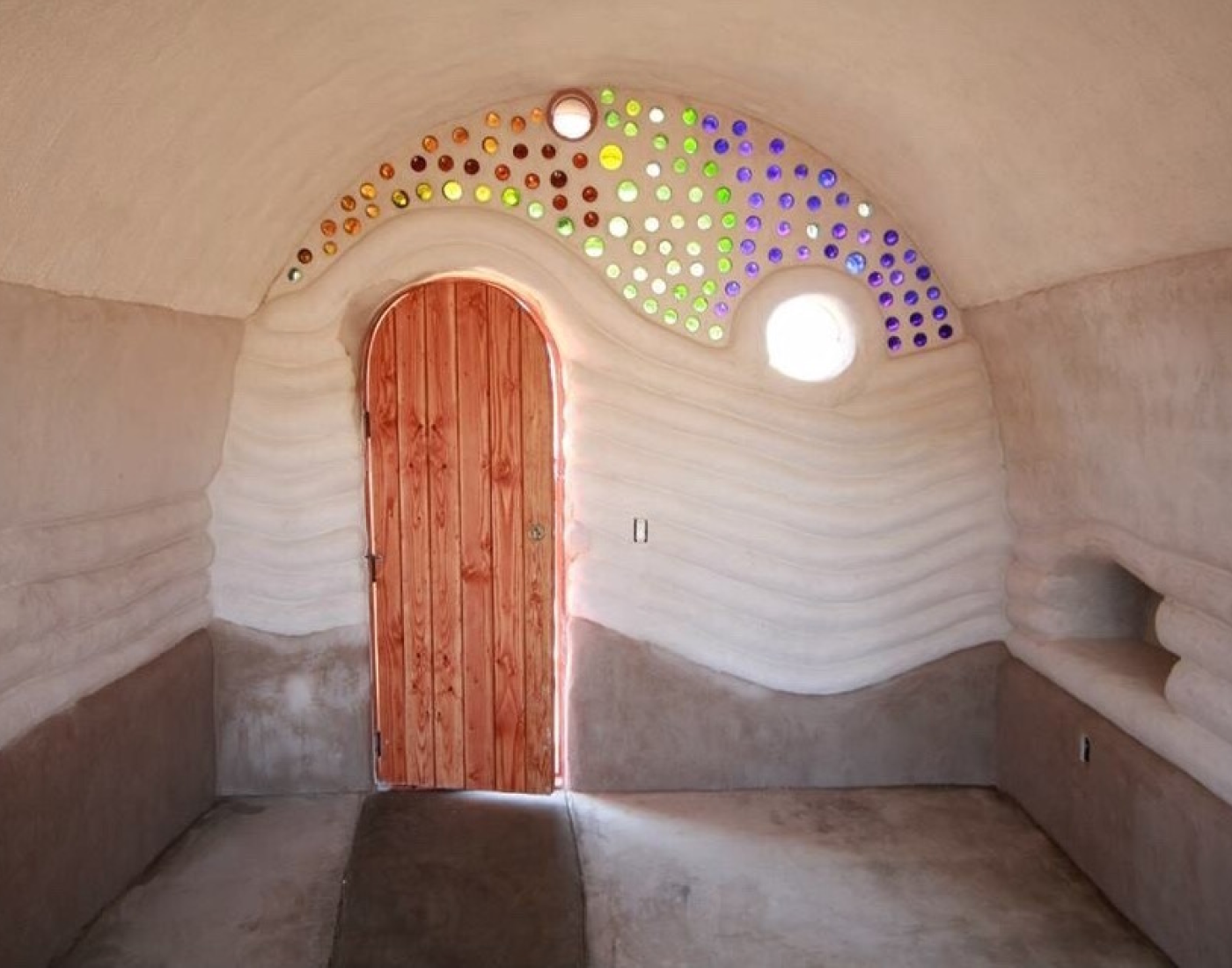 The "Water Vault" was named by a group of long term apprentices who completed this single, standalone vault in 2015. In our advanced long term program offered in the Spring, students who have completed our apprenticeship program have the opportunity to design and build a vault similar to this. The vault includes a south wall designed for maximum solar gain, as well as an insulated floor slab to retain heat and maintain consistent temperatures. The door is made from recycled wood and the glass design uses recycled bottles.