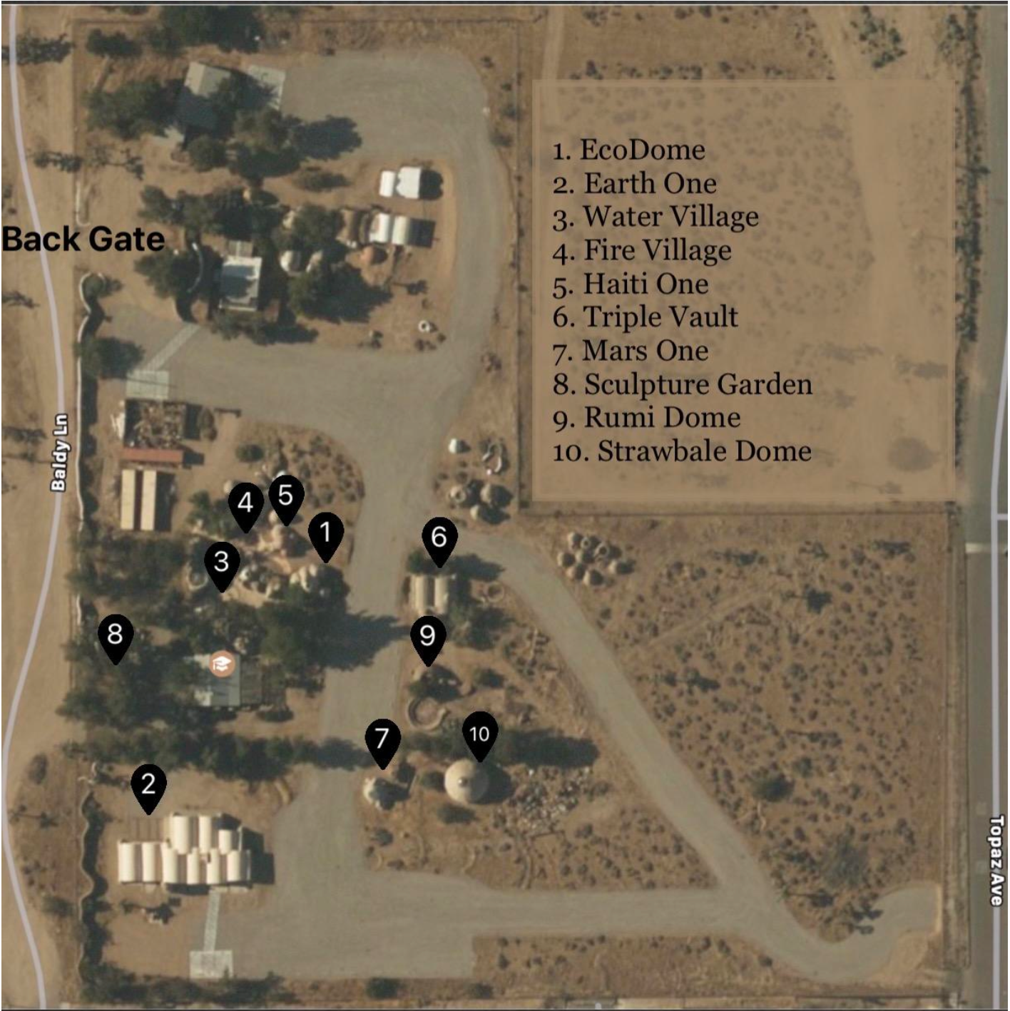 -Access to all interior/exterior of CalEarth buildings (map below)
